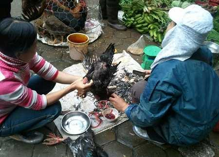 Cảnh giết mổ gà, vịt ở chợ Dịch Vọng, Cầu Giấy.