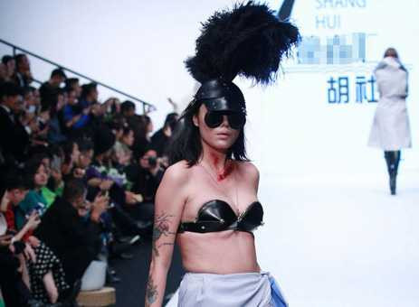 Nội y siết chặt cơ thể, những chiếc váy vấy máu gây xôn xao tuần lễ thời trang quốc tế Trung Quốc.