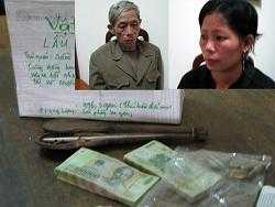 | Hai cha con Lương Văn Lâm cùng tang vật vụ án |