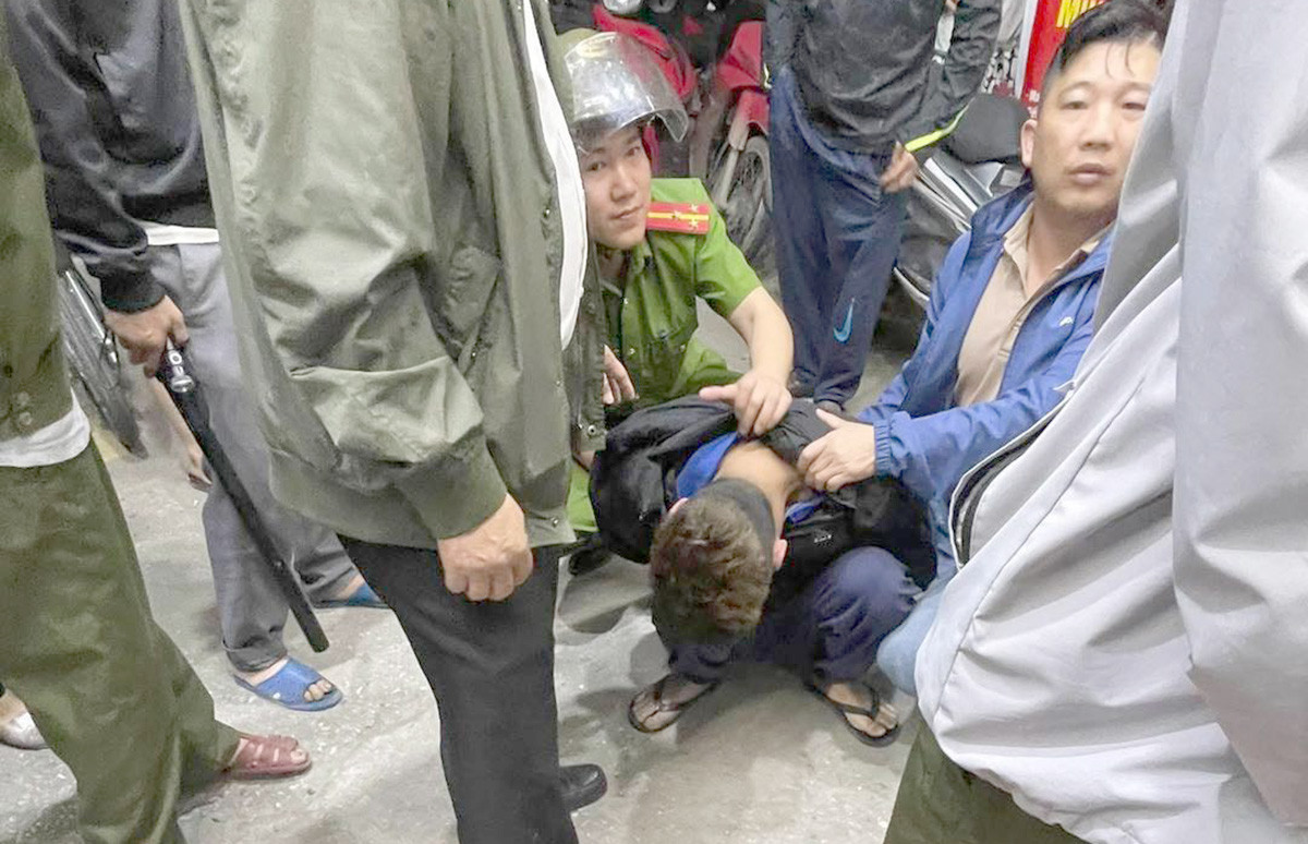 Lực lượng Công an địa phương phối hợp với người dân vây bắt được tên cướp.