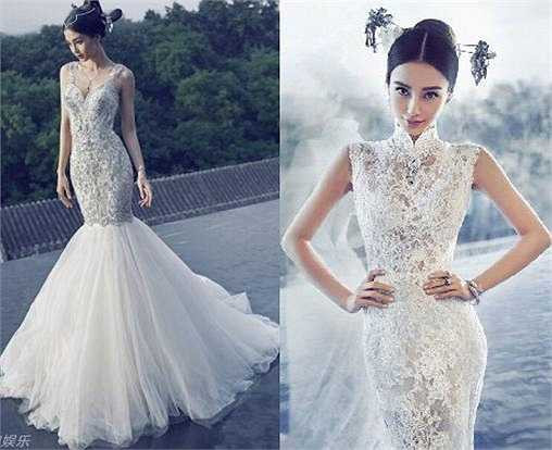Những bộ váy Angelababy mặc cho bộ ảnh cưới là những thiết kế từ thương hiệu Elie Saab, thuộc BST Haute Couture Xuân Hè 2014. Được biết, những thiết kế thời trang thương hiệu này, đặc biệt là dòng Haute Couture đều được sản xuất với số lượng hạn chế và có giá mỗi bộ khoảng 27.000 USD (600 triệu đồng).