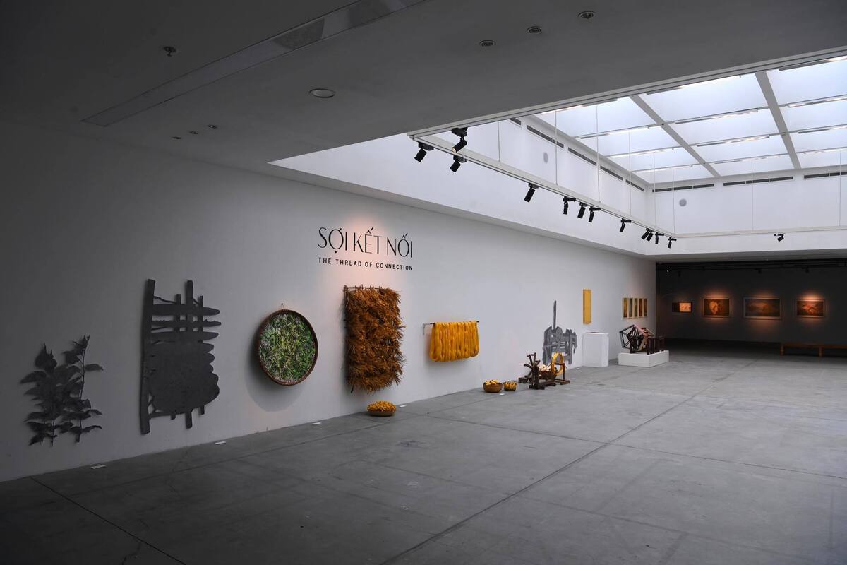 Triển lãm “Sợi kết nối” do nghệ sĩ - giám tuyển Nguyễn Thế Sơn dẫn dắt, hội tụ gần 80 tác phẩm hội họa và sắp đặt từ 24 nghệ sĩ trẻ tốt nghiệp Khoa Hội hoạ trường Đại học Mỹ thuật Việt Nam.