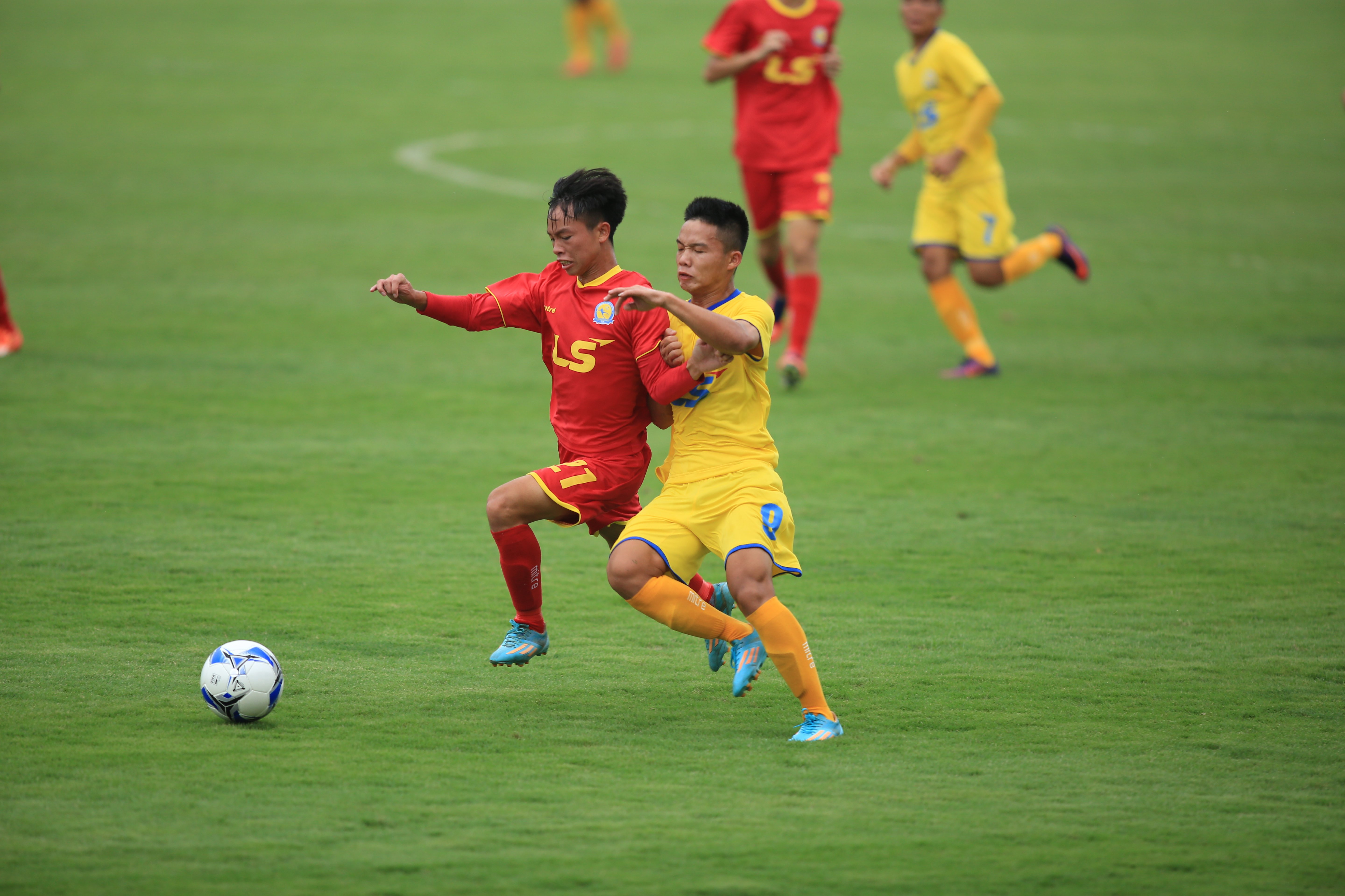 U17 HAGL (áo đỏ) bế tắc trước U17 SLNA.