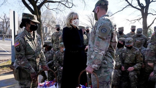Cùng ngày, Đệ nhất Phu nhân Jill Biden đã tới thăm một số binh sĩ để gửi lời cảm ơn. Bà Jill mang theo bánh quy từ Nhà Trắng để làm quà.