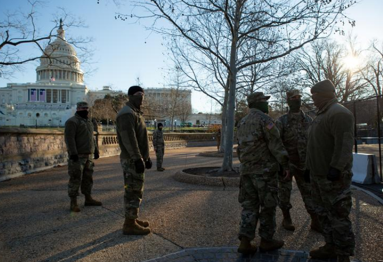 Lực lượng Vệ binh Quốc gia Mỹ trong khuôn viên tòa nhà Quốc hội. (Ảnh: Reuters)