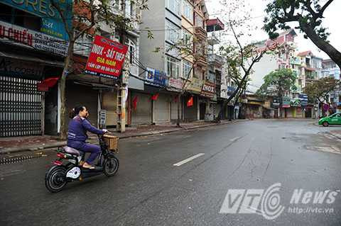 | Phố Giảng Võ (Đống Đa, Hà Nội) vào thời điểm 8 giờ sáng ngày mùng 1 tết trở nên yên tĩnh, vắng vẻ |