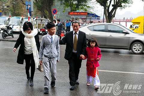 Nhiều gia đình cùng nhau dậy sớm đi dạo phố để tận hưởng thời khắc hiếm hoi này
