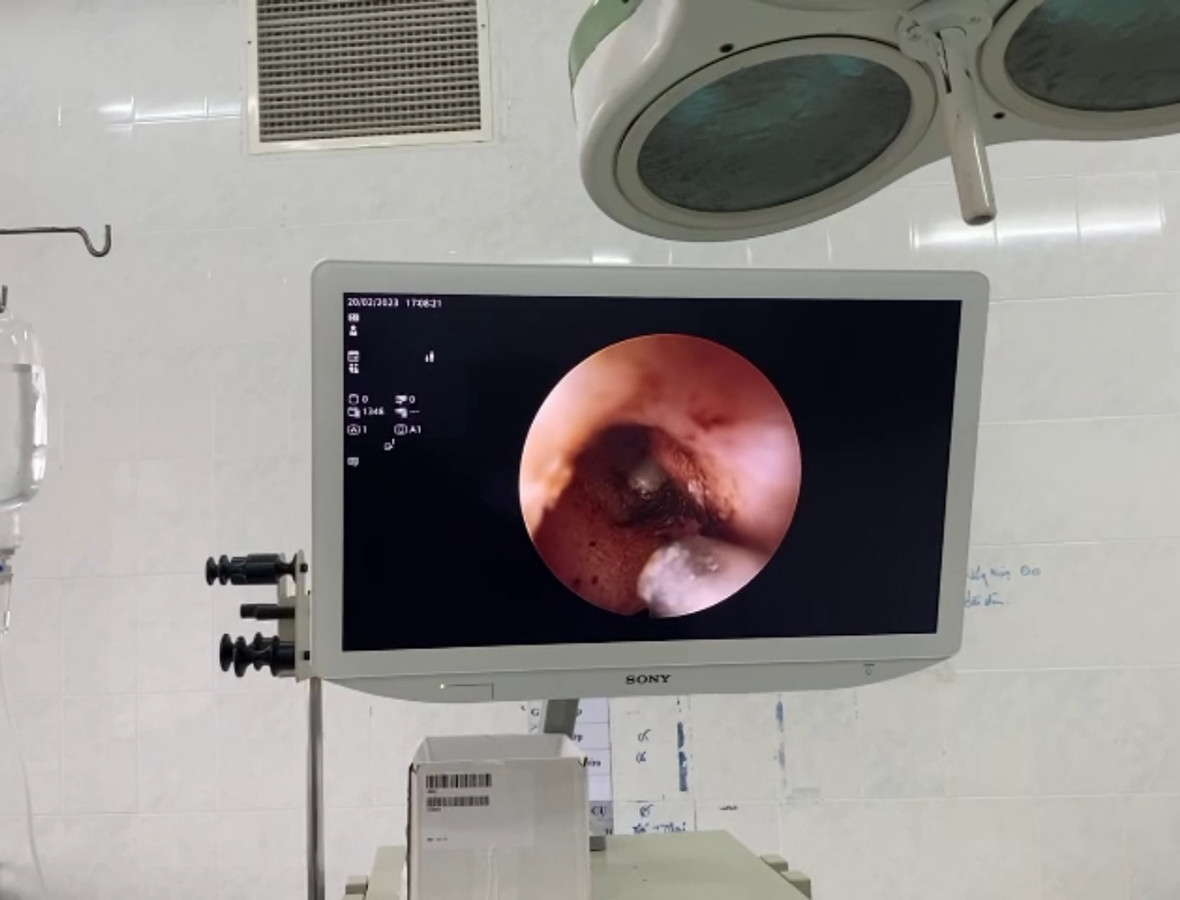 Bé được chỉ định nội soi cấp cứu lấy dị vật. Sau gần 10 phút nội soi, đội ngũ bác sĩ đã gắp lấy thành công dị vật là con ve chó dính chặt vào thành ống tai ngoài, với kích thước khoảng 4x4 mm.
