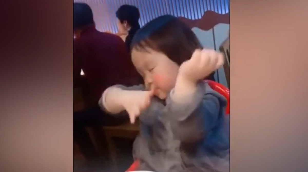 Hài lòng vì được ăn ngon, cô bé đặt bát xuống và bắt đầu lắc lư theo nhạc trong bữa tiệc với đôi mắt nhắm nghiền cực kỳ "phê pha".