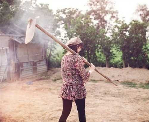 Các bác nông dân thực thụ không ngần ngại cho Thanh Phương cùng ê-kíp mượn không gian và dụng cụ làm vườn như cuốc, xe đẩy, rổ