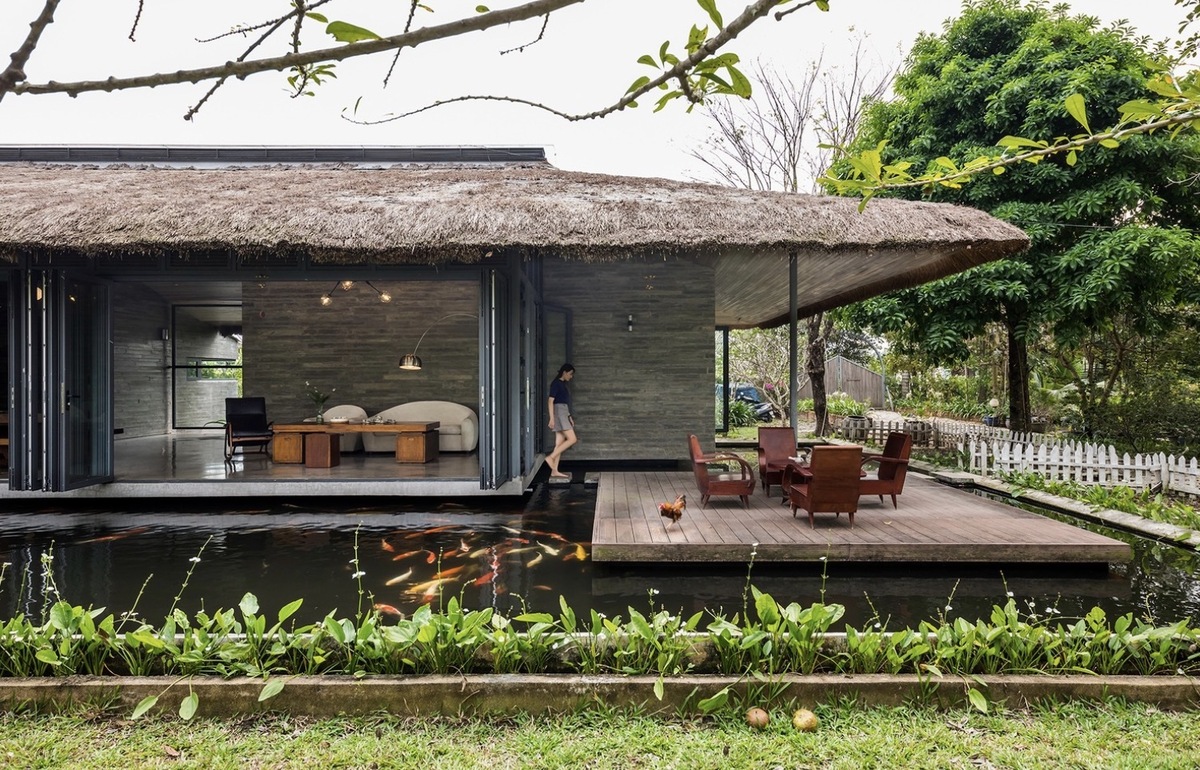 Ngôi nhà vườn Nam Bộ kiểu nghỉ dưỡng được thiết kế với năm khối chức năng tách rời, mở ra không gian xanh mát với mái tranh lớn và hồ nước rộng lớn. Lối kiến trúc không gian mở, vườn cây trái xum xuê và ánh sáng tự nhiên tạo ra không gian sống thoải mái và gần gũi với thiên nhiên.