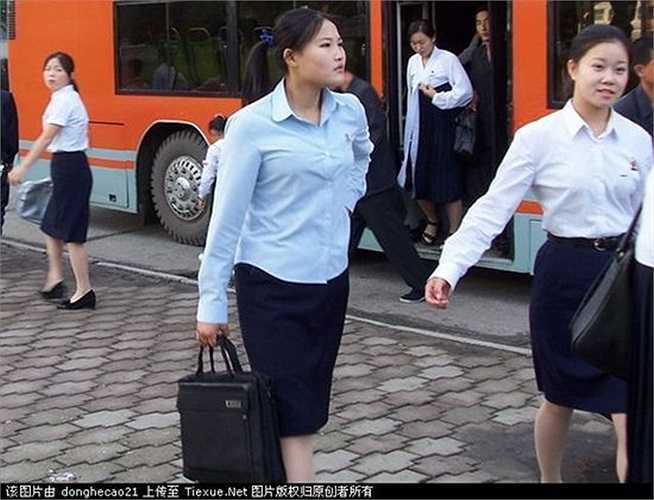 Phụ nữ Triều Tiên trong trang phục trắng đen cùng giày cao gót hiện đại