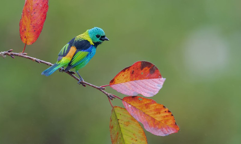 Nhiếp ảnh gia Supreet Sahoo là người yêu thích du lịch mạo hiểm. Anh thích khám phá thiên nhiên hoang dã trong những khu rừng ở Mỹ Latinh. Anh khiến người xem ngỡ ngàng bởi những bức ảnh tuyệt đẹp ghi lại khoảnh khắc diệu kỳ của các loài chim sặc sỡ nhất nơi đây. Trong ảnh là chim Tanager đầu xanh.