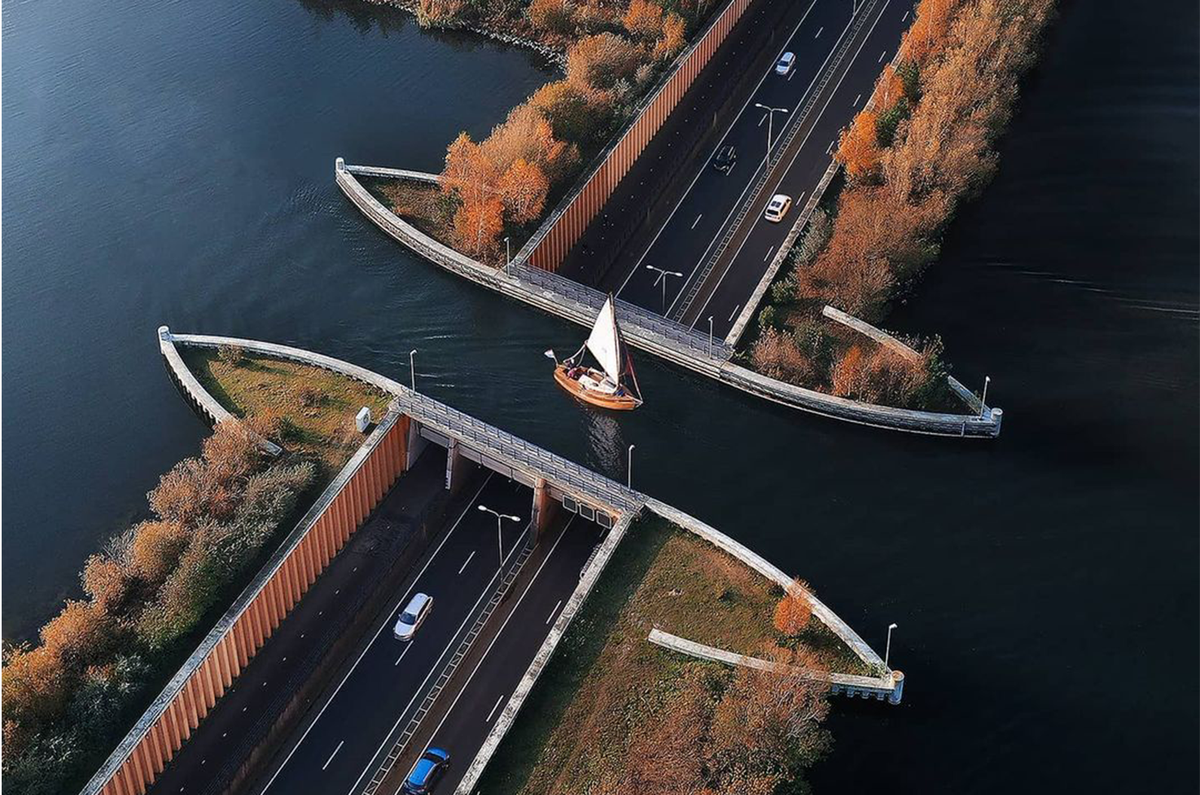 Cây cầu được mô tả là con đường tuyệt vời nhất trên thế giới. Và dựa trên những hình ảnh chụp từ trên cao, chẳng ai có thể phản đối được lời ca tụng này dành cho Veluwemeer Aqueduct.
