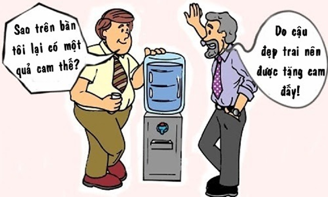 - Bởi vì cậu đẹp trai đó! Quy định của công ty, ai đẹp trai xinh gái sẽ được tặng trái cây tráng miệng mỗi ngày. - sếp của Tồ lên tiếng trêu chọc.