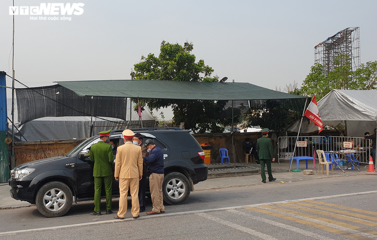 Chốt kiểm soát người và phương tiện từ Hải Dương về Hải Phòng trên Quốc lộ 5 qua khu vực ga Dụ Nghĩa (An Dương, Hải Phòng).