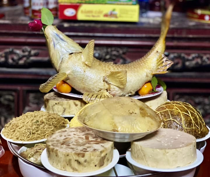 Món cá chép nằm võng gắn với ước nguyện tuổi già được nghỉ ngơi, an nhàn. Cá có dáng cong như mái đình cũng gợi liên tưởng đến đặc trưng nghề mộc làng Diệc vốn cầu kỳ, mềm mại và uốn lượn theo nét cổ của truyền thống.