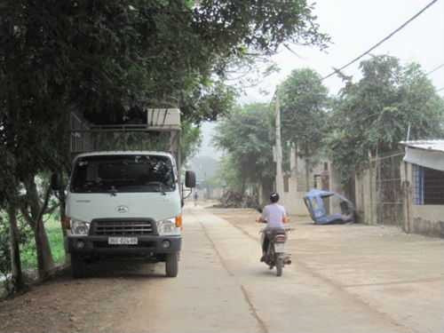| Ô tô đậu bên đường chờ bốc chó từ làng Sơn Đông để chuyển ra Hà Nội tiêu thụ |