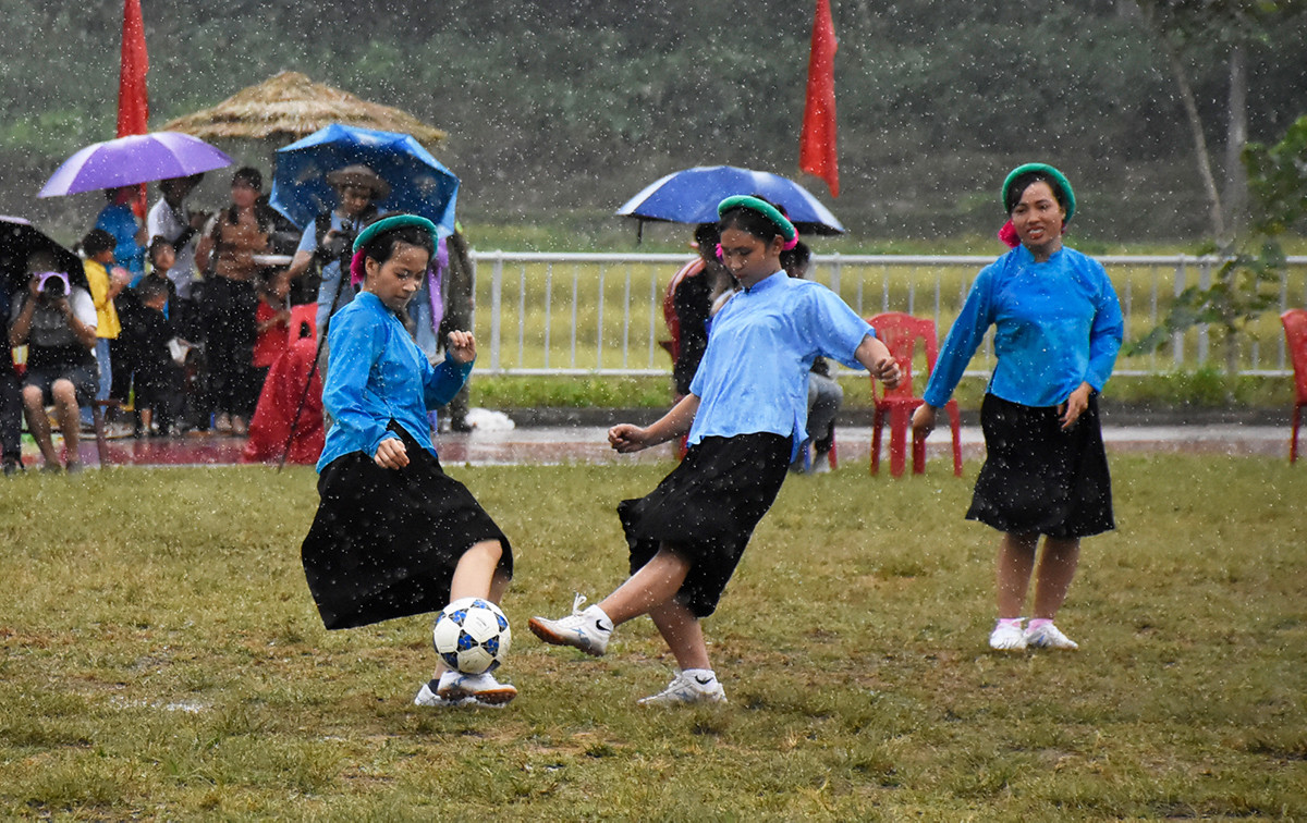 Video: Xem phụ nữ dân tộc Sán Chỉ đá bóng dưới cơn mưa tầm tã.