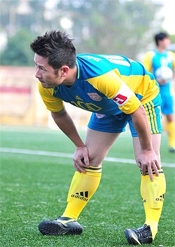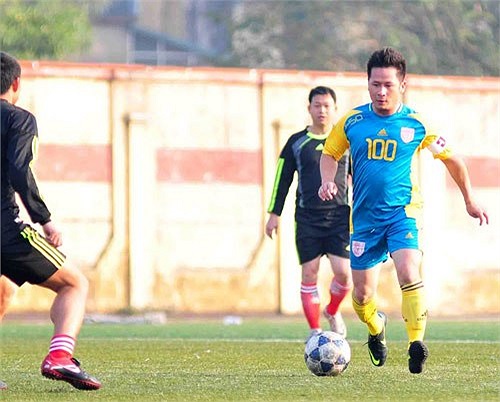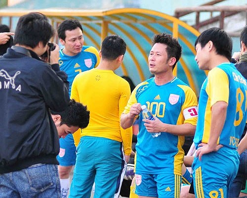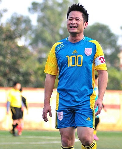 Bằng Kiều khoác áo số 100, đeo băng đội trưởng của đội Nghệ sỹ Hà Nội