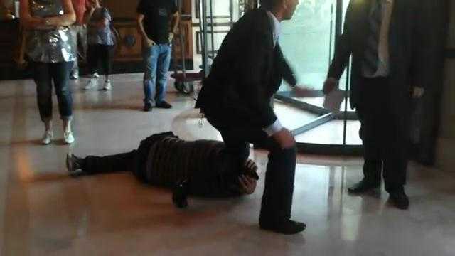 (VTC News) - Lady Gaga vừa bước ra sảnh khách sạn ở Bucharest, Romani thì có một người đàn ông cầm tờ giấy lao vào cô, hai về sỹ to lớn đã nhanh chóng quật ngã người này trước sự chứng kiến của nhiều fan hâm mộ.
