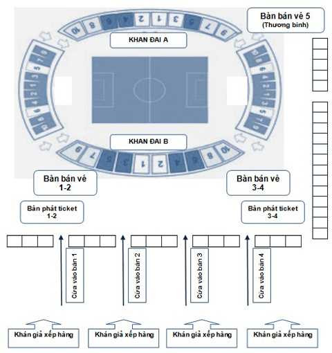 Người mua vé xếp hàng ngoài hàng rào cứng của Sân vận động theo hướng dẫn của BTC và do lực lượng an ninh kiểm soát bảo vệ. BTC sẽ phát tích kê tại các cửa vào theo từng đợt (10 người/đợt) để cho vào sân, mỗi người một (01) tích kê, mỗi tích kê được mua tối đa hai (02) vé; sau khi được phát tích kê, người mua vé sẽ được BTC hướng dẫn vào các bàn bán vé trong sân để mua vé.