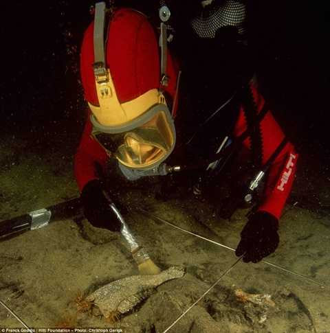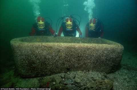 Các thợ lặn đã lặn xuống dưới đáy biển để khai quật được kho báu, trải qua 20 năm thực hiện nạo vét để đưa chúng lên bờ. Trong số các hiện vật tìm thấy có những bức tượng đá khổ lớn, bảng chữ tượng hình, kho báu gồm vàng và trang sức.