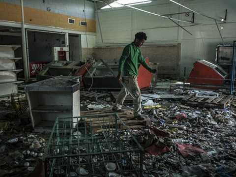 Một siêu thị bị cướp bóc tan tành sau khi nhiều người xông vào bên trong