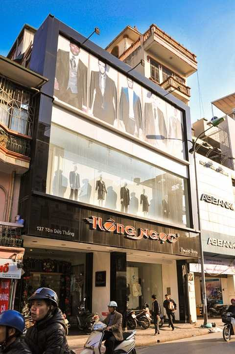 Veston Hồng Ngọc được trưng bày với diện tích hơn 400m2 x 3 tầng nằm trên con phố sầm uất Tôn Đức Thắng – Đống Đa – Hà Nội với những mẫu mã, kiểu dáng và chất liệu đẳng cấp. Cả 4 mùa, từ tầng 1 đến hết tầng 3, toàn bộ chỉ trưng bày, kinh doanh duy nhất một mặt hàng Comple Veston.