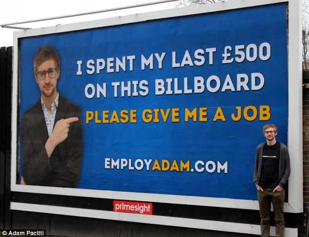 Do không nhận được phản hồi khi nộp hồ sơ vào một số công ty, Adam Paciti (Anh) cũng đã dùng 500 bảng (tức 16,5 triệu đồng) cuối cùng của mình lập nên một cái bảng khá lớn đặt trên một đường phố ở Luân Đôn, nhằm thu hút sự chú ý của các công ty.