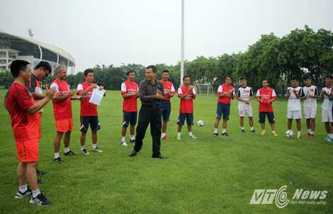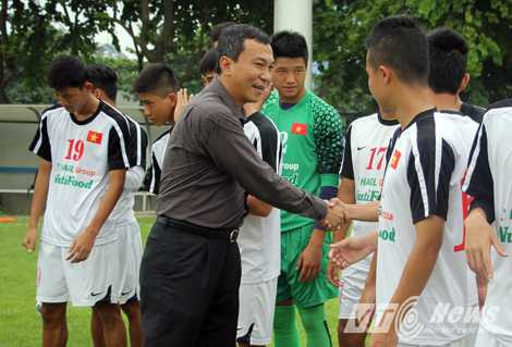 | Trước khi buổi tập của U19 Việt Nam diễn ra, Phó chủ tịch VFF Trần Quốc Tuấn đã tới thăm và động viên thầy trò HLV Graechen. |
