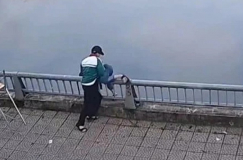 Hình ảnh nam sinh đánh bạn rồi bế, hất bạn xuống hồ nước ở phường Yên Bái, tỉnh Lào Cai. (Ảnh cắt từ clip)