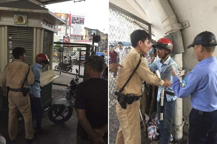 Tổ công tác Đội 4 phối hợp Công an quận Thanh Xuân đã khống chế nam thanh niên, dập lửa và đưa người đốt xe về trụ sở Công an phường Phương Liệt.