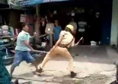 Ngay sau đó Hải xông tới, rút chìa khóa xe mô tô đặc chủng của CSGT quăng vào đám cỏ.