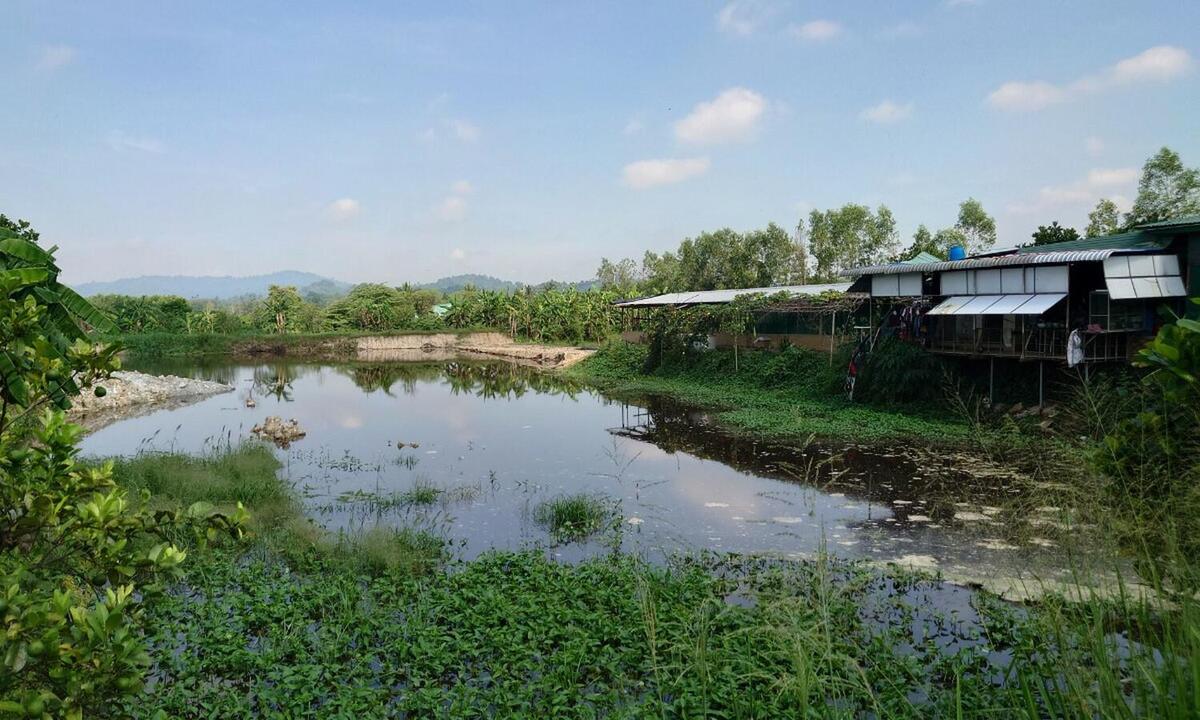 Hồ chứa nước chuyển màu trong trang trại Huỳnh Gia Phúc. (Ảnh: Thanh tra Sở TNMT Đồng Nai)