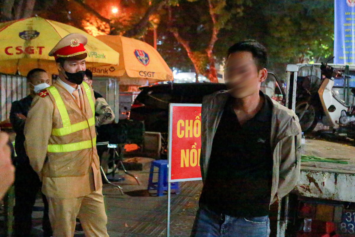 Lúc 23h12, Tổ công tác tiếp tục dừng xe, kiểm tra với tài xế N.L.T điều khiển xe máy mang BKS 29 AA- 283.xx. Lực lượng chức năng kiểm tra nồng độ cồn tài xế T. và cho kết quả vi phạm 0,128 mg/1 lít khí thở. Tài xế T. cho biết, vừa đi dự tiệc liên hoan về nên có uống vài cốc bia, không ngờ lại lên nồng độ cồn mức như vậy.