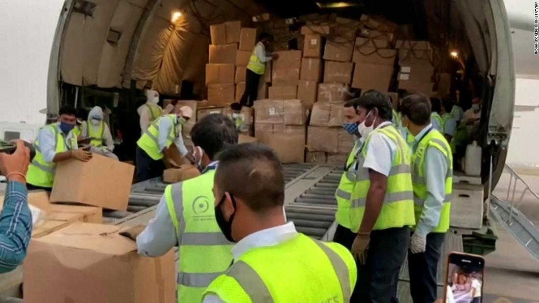 Trong khi đó, nhiều nước trên thế giới cam kết hỗ trợ khẩn cấp. Các máy bay chở máy thở, nguồn cấp oxy và thuốc điều trị virus bắt đầu đến nước này từ tuần trước. Những bức ảnh chụp lại các kiện hàng được dỡ ra tại sân bay New Delhi.
