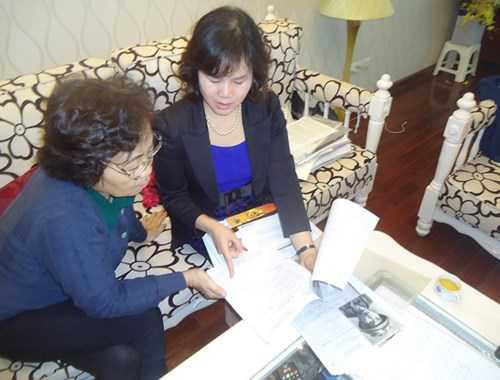 | Nhà ngoại cảm Phan Thị Bích Hằng (phải) đang trao đổi về hồ sơ xét nghiệm ADN với nhà giáo Quan Lệ Lan. |