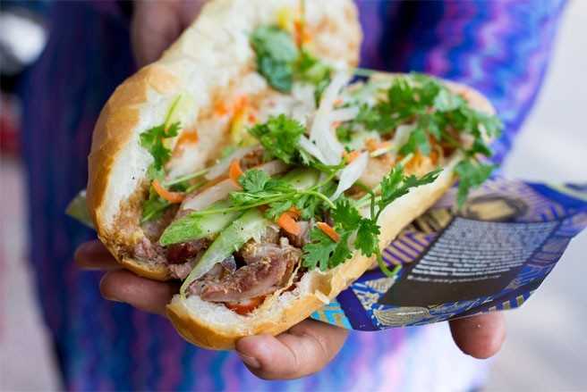 | Loại bánh mì kẹp lấy cảm hứng từ nước Pháp này ban đầu có ở miền Bắc, nhưng sau đó xuất hiện ở miền Nam, theo chân những người làm bánh sau năm 1954 - thời điểm Việt Nam giành độc lập từ tay thực dân Pháp. |