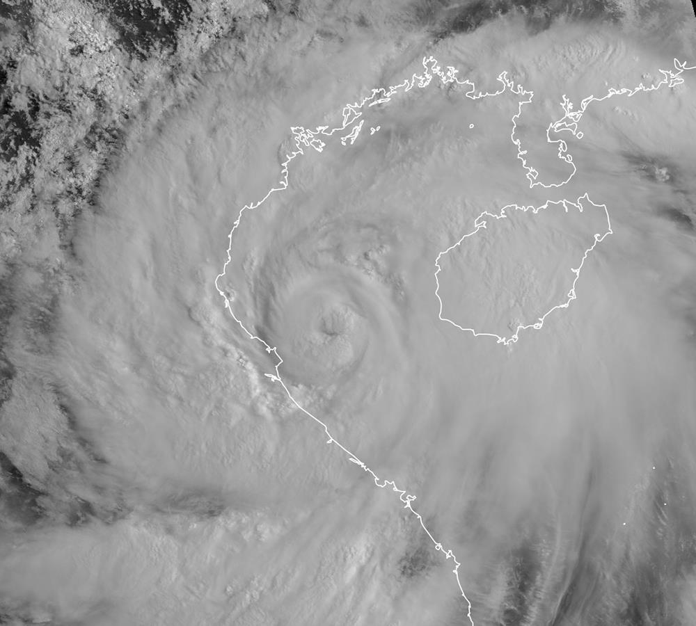 Hoàn lưu bão số 5 ít bị ảnh hưởng bởi ma sát với địa hình đảo Hải Nam nên không bị phá vỡ cấu trúc.