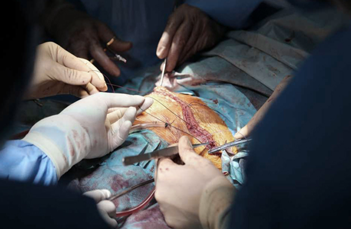 Các bác sĩ BV Quân y 103 thực hiện ca ghép phổi từ người cho sống cho bệnh nhi 7 tuổi năm 2017.