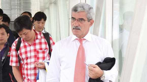 | Dưới sự đạo diễn của cậu con trai Tiago (bên phải), HLV Calisto khăn gói lên đường sang Angola. |