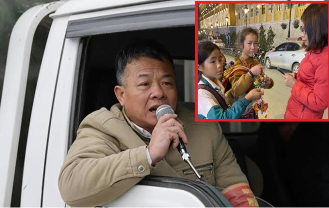 Cán bộ phường Sa Pa đi tuyên truyền nhắc nhở du khách không mua hàng của trẻ em bán hàng rong.