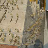 Theo ghi nhận của PV ngày 19 và 20/3, hàng chục công nhân đang tiến hành khoan, đục để gắn hàng trăm bơm xilanh vào cầu Rồng (Đà Nẵng). Ngoài ra, một số công nhân khác dùng máy mài mài nhẵn các vết nứt dài trên ụ chân vòm cầu Rồng.