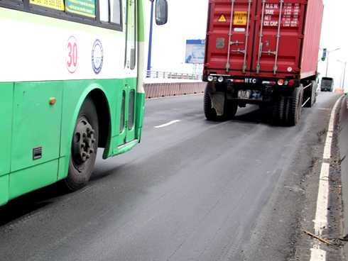 Thế nhưng, hiện nay mặt cầu vượt thép tại ngã tư Thủ Đức đã lún thành rãnh, 2 bên thành cầu nhựa đùn nhô cao gây nguy hiểm cho xe cộ lưu thông. Đoạn giữa cầu, mặt đường bị lún sâu, nhất là trên làn xe tải nặng và xe container theo cả 2 hướng. Còn mặt đường ở 2 đầu cầu, tình trạng lún nhẹ hơn.