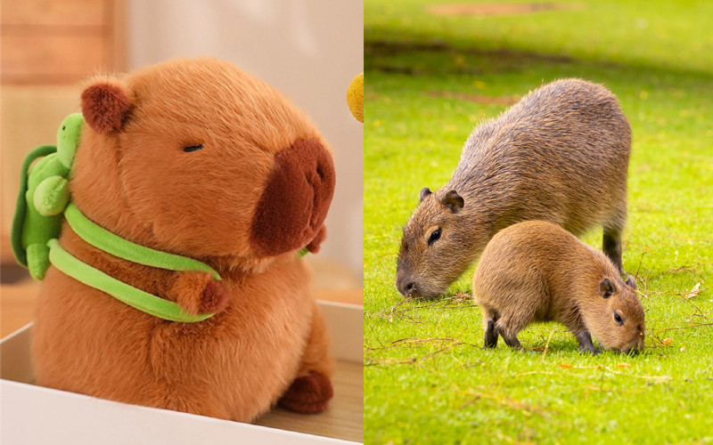 Nắm bắt được nhu cầu của thị trường, nhiều đơn vị nhanh chân sản xuất những thú bông Capybara ngộ nghĩnh, hài hước như Capybara đeo ba lô rùa, Capybara chảy nước mũi, Capybara hồng.