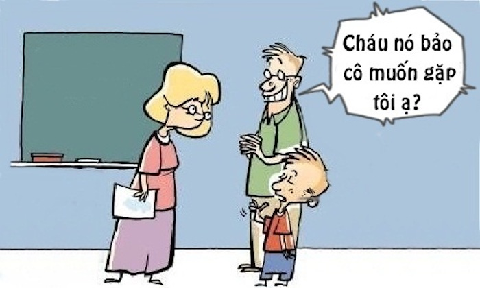 - Sao lại là bố, bố có đi học đâu? - bố Tèo thắc mắc.