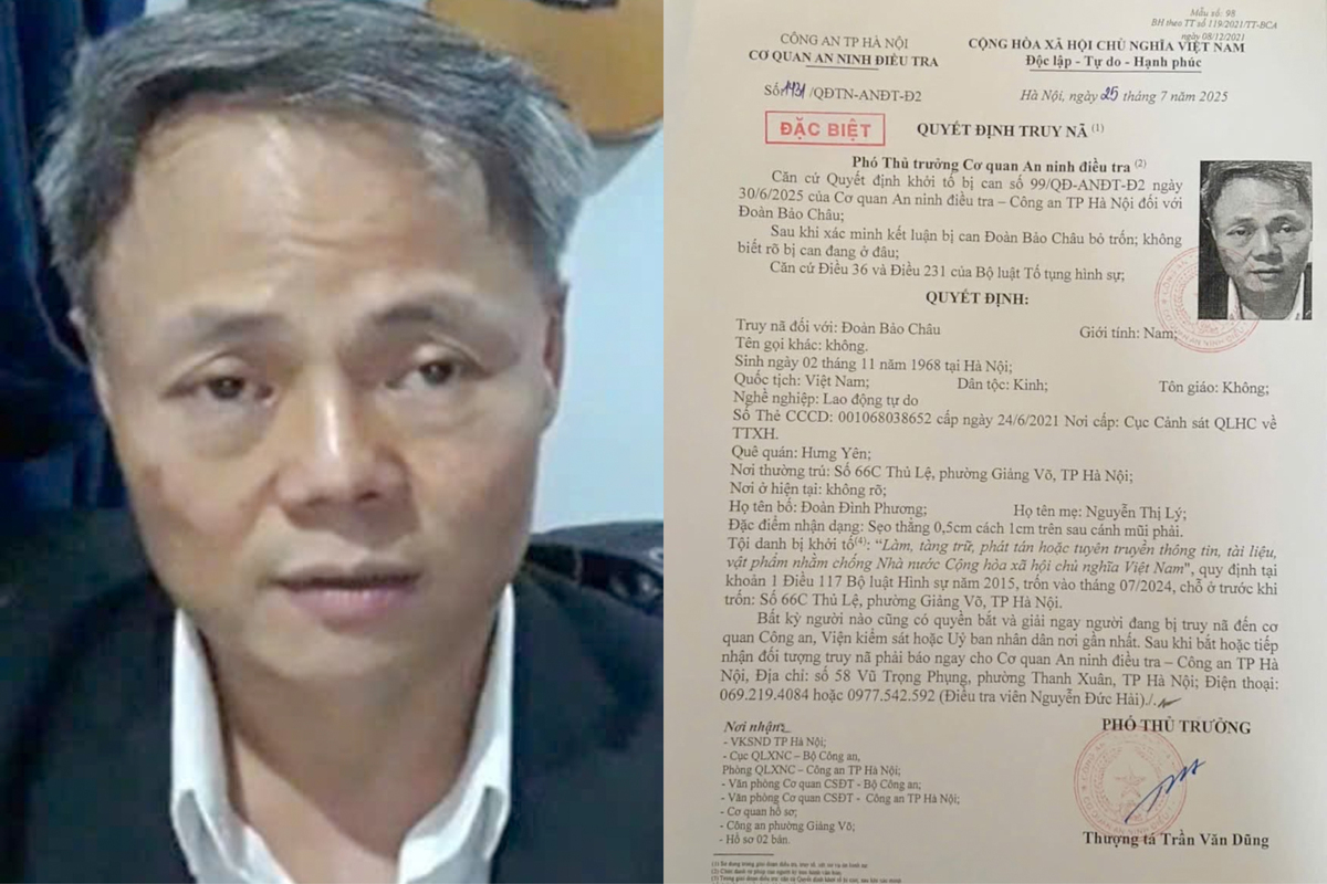 Ngày 14/8, Công an TP Hà Nội cho biết, Cơ quan An ninh điều tra đã phát lệnh truy nã đặc biệt đối với Đoàn Bảo Châu (SN 1968, trú tại phường Giảng Võ, Hà Nội).