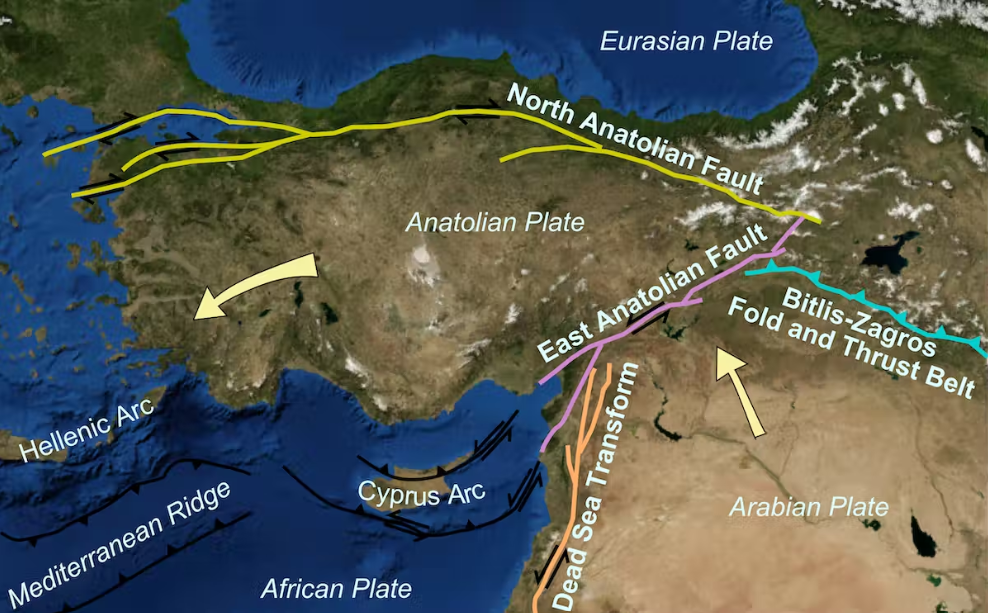 Khu vực này của Thổ Nhĩ Kỳ dễ xảy ra động đất vì nó nằm ở giao điểm của ba mảng kiến tạo vỏ Trái đất: mảng Anatolia, mảng Ả Rập và châu Phi. Trong đó, mảng Ả Rập đang di chuyển về phía bắc, hướng vào châu Âu, khiến mảng Anatolia (Thổ Nhĩ Kỳ nằm trên mảng này) bị đẩy ra phía tây.