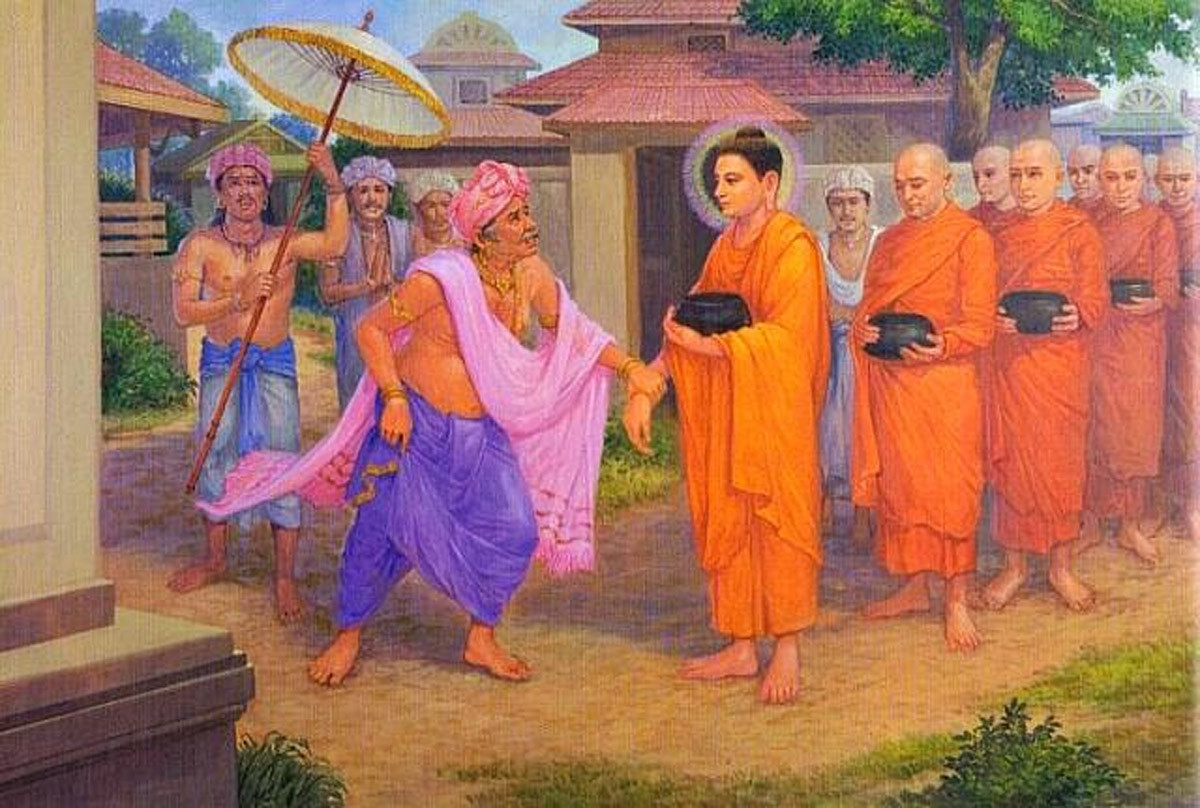 Đức Phật giải thích: “Tâu Đại vương, truyền thống của hoàng tộc hẳn không phải là khất thực độ mạng. Nhưng đây là truyền thống của chư Phật. Hàng nghìn vị Phật trong quá khứ vẫn đi trì bình khất thực”.
